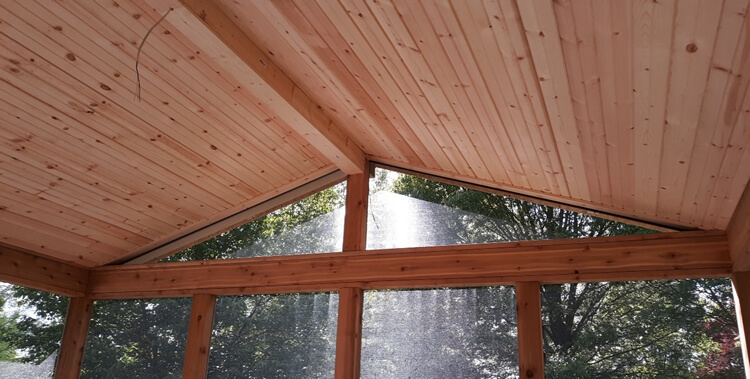 While screened porches of the past may have had a simple exposed wood construction with quite a rustic look, screened porches of today have a myriad of material selections which dramatically affect the finish and thus the interior design of your screened porch.