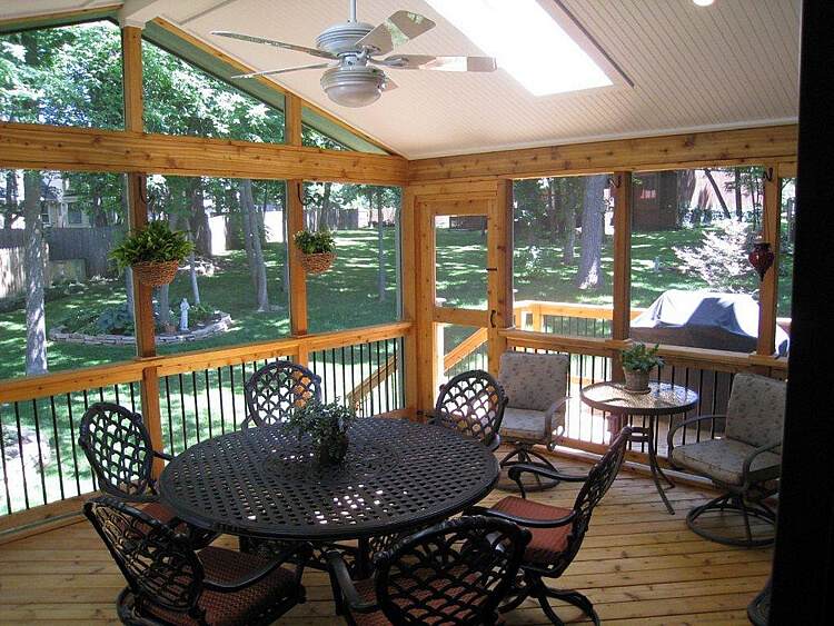 Screening: this is one of the most sensitive areas of the porch because it’s exposed to potential damage. Standard light-duty screening may provide you with years of headaches so it’s important to consider all available options.