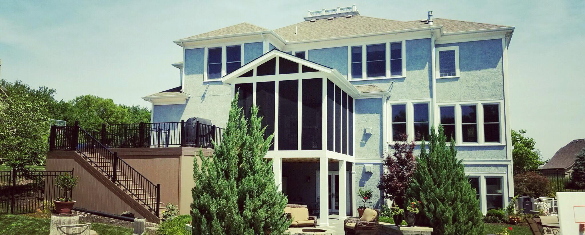 This deck and porch project was unique in many aspects. The scale and style of the multi-level home called for unconventional planning and execution. We built a truly unique and beautiful outdoor living space, which specifically accommodated the homeowners’ requirements, and allowed us to demonstrate why we are a leading Olathe deck builder.