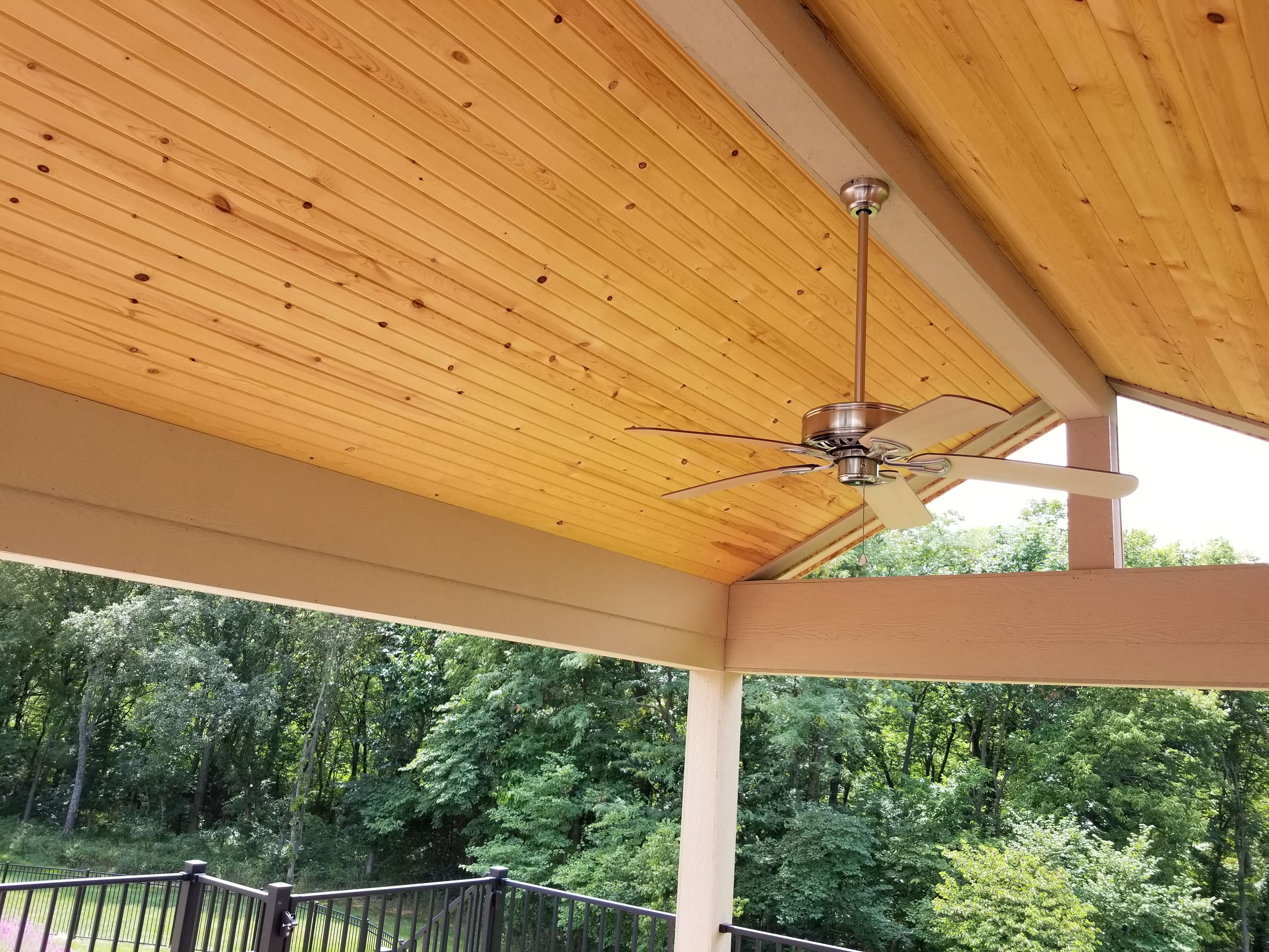 The ceiling of the covered porch is tongue & groove pine. The porch has an open gable end to allow maximum light into the space while still providing the sun protection they desire. Notice the way the column trim matches the home’s color. At Archadeck of Kansas City, we work to ensure your new space looks original to your home.