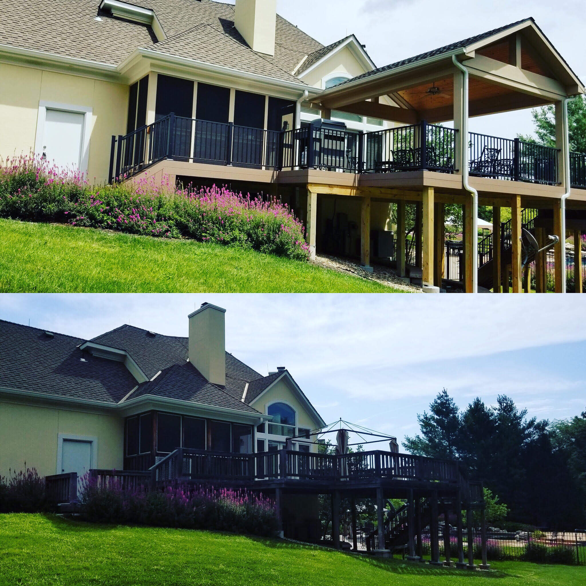 Take a look at this beautiful new deck and open porch in Johnson County KS. You’ll never believe what this deck looked like before the rebuild. Scroll down to see the before & after.