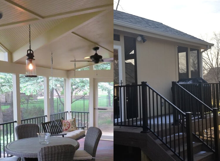 If you are planning to use your new outdoor space as an extension of your indoor space by adding lighting, ceiling fans, and other electrical elements, Archadeck of Kansas City can help you plan these options. We can make recommendations regarding placement of your TV. For instance, we can create a TV wall to specifically keep the grill deck out of sight from your screened porch. By finishing your ceiling, we can obscure electrical wiring, and install lighting and ceiling fans cleanly. Will you be decorating your space for holidays, or parties? By placing outlets in the ceiling, you can easily hang strings of lighting for those uses. If you will be using lamps, we can place outlets based on your intended furniture layout, where lamps will be located.