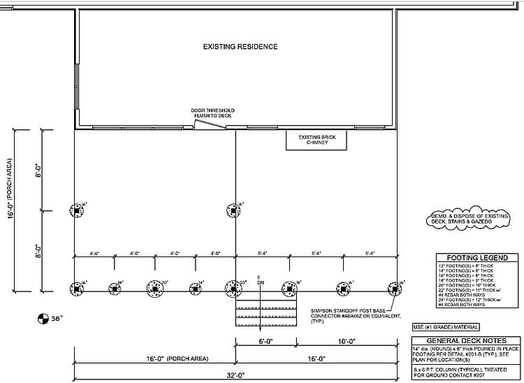 Screened porch and deck footings plan