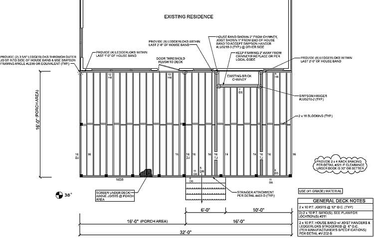 Screened porch and deck framing plan