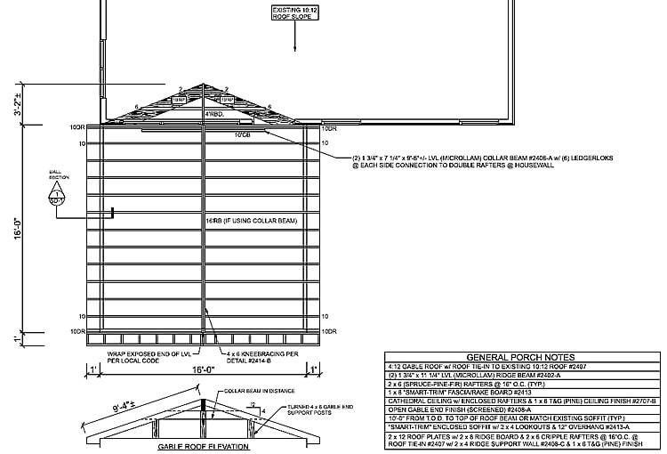 Screened porch roof framing plan