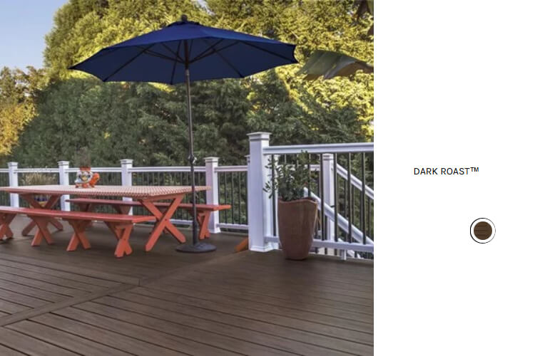 Calling all coffee lovers! If you love the abundance of a full-flavored French roast, you might be inclined to choose Dark Roast for your new TimberTech deck. Not all outdoor spaces are designed to be bright and airy. If you prefer a cozier aesthetic, this dark decking choice would be perfect for your porch or deck. As with dark gray, rich brown lends itself to an impactful design punch. With TimberTech’s 30-year limited fade and stain warranty, you can count on this dark decking choice to remain true to its color for many years to come!