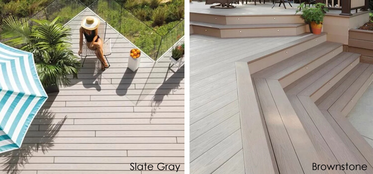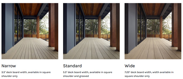 TimberTech began offering wide and narrow decking boards in their premium AZEK Vintage Collection last year. While their capped polymer decking offers many exotic color and wood grain choices, TimberTech has now expanded their wide and narrow boards to two finishes in their AZEK Harvest Collection. These simpler, lighter hues are very popular for decks, which receive full sun, as they absorb less heat than darker finishes. Clients, who are in search of both softer decking colors with a choice to mix-and-match or select a decking board width outside of the standard 5.5", will now be able to choose narrow or wide width decking in either Slate Gray or Brownstone.