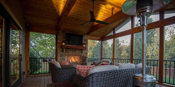 Your wants. Your needs. Your expectations. Whether you want to build an open-air deck, covered deck, or screened-in porch – all these things carry different costs – due to the three factors stated before now. Every decision you make for your project will carry with it more or less cost. But don’t worry! Our highly experienced team of Design Consultants will help guide you through the right choices for your project, which will satisfy your wants and needs, including your budget. This includes not only size and building materials, but also upgrades, like an outdoor fireplace, premium ceiling finishes, installed lighting, heating, additional outlets, and more.
