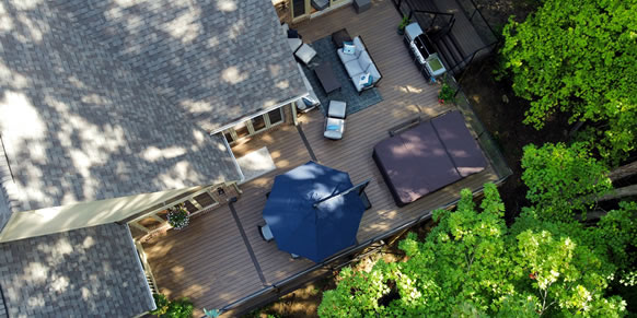 This includes designing wide deck stairs for easy traffic flow while entertaining guests on your deck. It means suggesting the right materials for your needs and giving you a choice between not just decking colors, but also between the best brands in decking. It means showing you the many choices between porch and deck railings and any other type of customization, like shape, size, orientation.