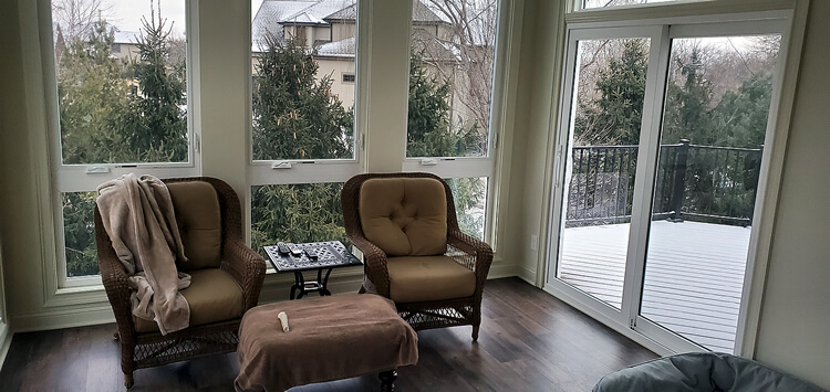 As with most of our porch projects, this sunroom also features an attached deck. This family can easily host guests in their outdoor living space, with the choice between gathering on the deck, or inside their sunroom – or both/