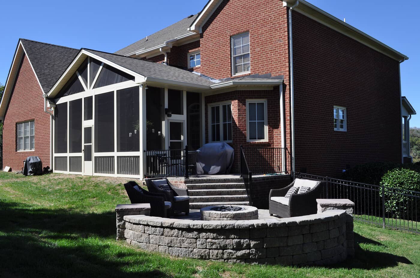 Combining a porch design or screened porch alongside a patio is the perfect pairing for many Nashville homeowners. An open or covered porch can provide much-needed shade and increase the potential for more outdoor activities. Let’s not overlook the possibility of adding a covered area over the patio itself either!