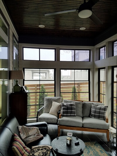 Did your covered porch come with a ceiling fan? How else will you stir up breezes on a sultry Nashville night? What about interior light fixtures, and exterior lighting, too? What about heat? We wrote an article recently about creature comforts on your new Nashville porch, and one of the takeaways is our enthusiasm for infrared heaters made by Infratech. These radiant heaters are energy-efficient and safe, and they give off a soft glow. Having infrared heaters on your screened porch is an excellent way to give yourself more porch days each year! They work so much better than traditional space heaters that there’s simply no comparison.