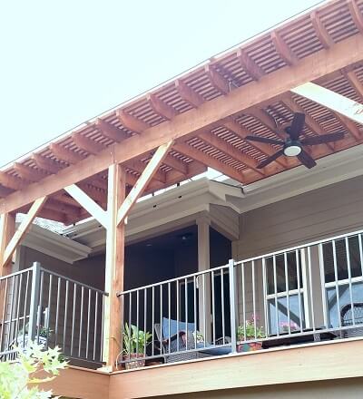 Pergolas are crazy popular for two main reasons. As a decorative element, they make a dramatic design statement over a deck or patio, and they provide some degree of shade. The amount of shade you’ll get from a pergola depends on the number, size, and angle of the rafters and slats across the top. In addition to its design, a pergola’s shade protection depends on its placement in relation to the sun’s path overhead.