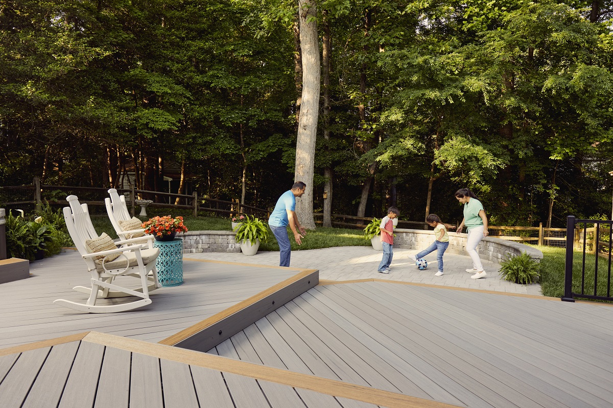When you include a patio with your deck project, you have the perfect setting for other hardscape structures, too. The most popular are the outdoor fireplace and fire pit. No one can resist the pull of a dancing flame. Consider the addition of a seating wall so you don’t need to have so many chairs filling the space. Bordering your patio with vertical hardscapes is the perfect way to add flair and take your outdoor living space to the next level. And since a patio is a low-maintenance outdoor structure, combining it with a low-maintenance composite deck gives you a totally low-maintenance outdoor living space.