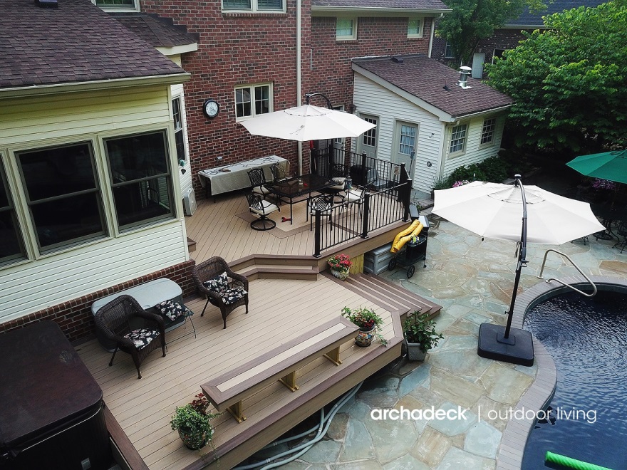 Don’t rule out the idea of a deck as your pool surround, too! TimberTech’s AZEK synthetic decking stays splinter-free and cooler than other deck surfaces. TimberTech AZEK also provides good traction for slip resistancewhen wet. Archadeck of Nashville can coordinate with your pool builder or designer to work in unison as we build your backyard oasis!