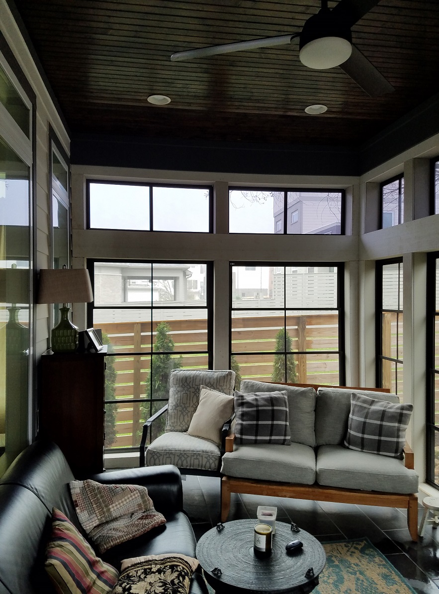 On the other hand, many homeowners prefer the third type, a 3-season porch or 3-season room, for its versatility. Add infrared heaters for warmth and there will be very few “too cold” days for enjoying your porch every winter.