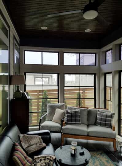 The second way to keep the chill out of your porch is to make it a custom-built 3-season porch. With the Eze Breeze system of windows and screens, you can slide the windows closed when it’s cold and open again when it’s warmer outside. Combine the EZE Breeze 3-season porch with a couple of infrared heaters and you’ll be all set each year when fall and winter roll around.