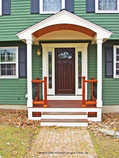 Archadeck of Suburban Boston specializes in designing and building many types of front porches as well as porticos. We have many years of experience designing front entries, each one matching the architectural style of the home for which we designed it. Whether it’s a traditional front porch, large Farmer’s Porch, or formal Captain’s Porch, a new front entry can transform your home more than you might imagine. That’s what National Curb Appeal Month is all about.