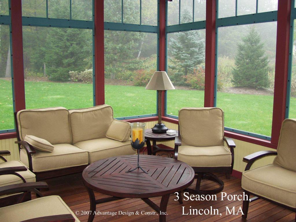 Three-season rooms offer more versatility than screened porches, and that versatility is the reason many of our clients have chosen them. A 3-season room, also called a 3-season porch, has windows you can close when the air is too cool for you to enjoy a screened room. You can use the same structure as a screened porch or as an enclosed porch with windows, depending on how you feel about the temperature outdoors. Even better, you can change your mind whenever you want to! That’s the versatility of a 3-season room.