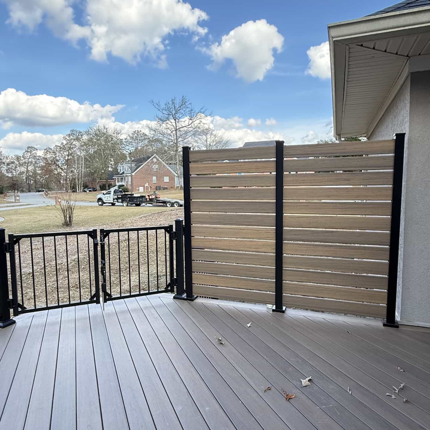 In Burlington, where lots sit closer together, you’ll often find privacy fences integrated into deck railings or patio perimeters.