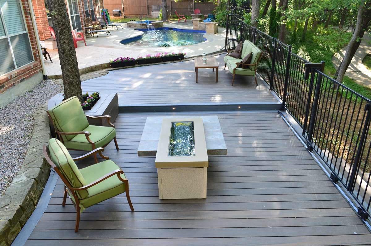 Your new or upgraded Dallas deck design doesn’t end with choosing the type of decking you’d like either. Customizing your deck means big design decisions such as staircase position and style, railing color & type and skirting. Taking you custom deck a step farther, there are more design amenities available to improve the livability and aesthetics of your structure, these include but are not limited to privacy screens, integrated deck lighting, pergolas, planters, built-in seating, custom fire features, outdoor kitchens and more!