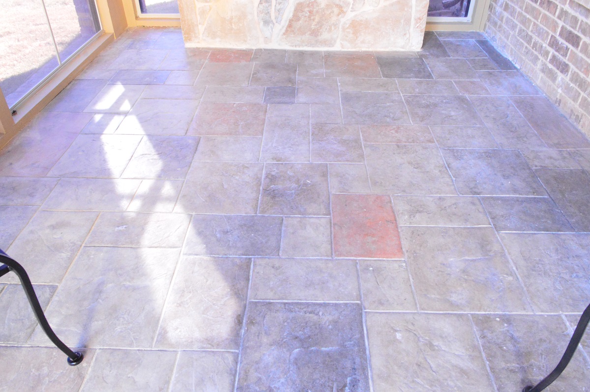 — Stamp and stain flooring is a beautiful complement to this Fort Worth 3-season room – just look at those colors!
