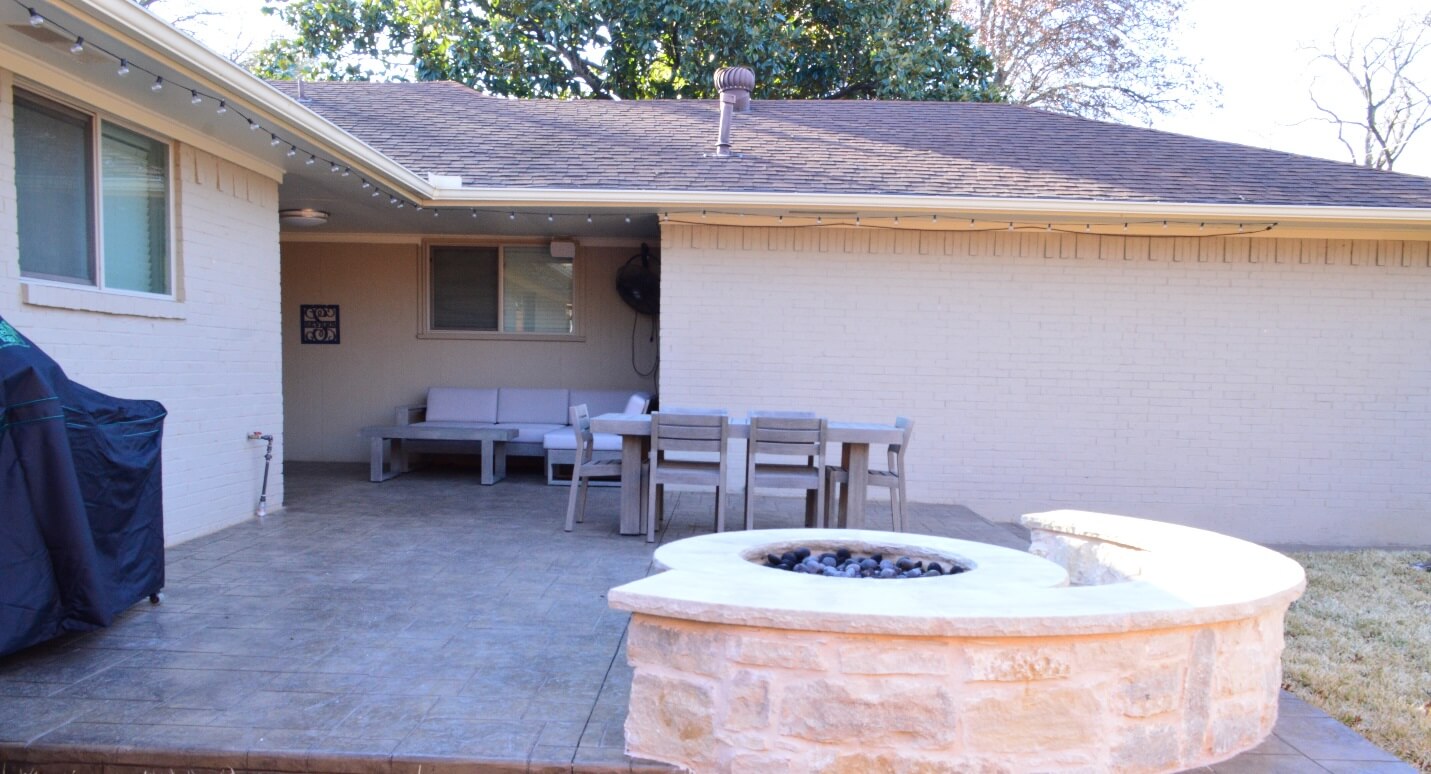 This beautiful stain and stamp patio expanse affords enough room for cooking and al fresco dining for this North Dallas family and their loved ones.