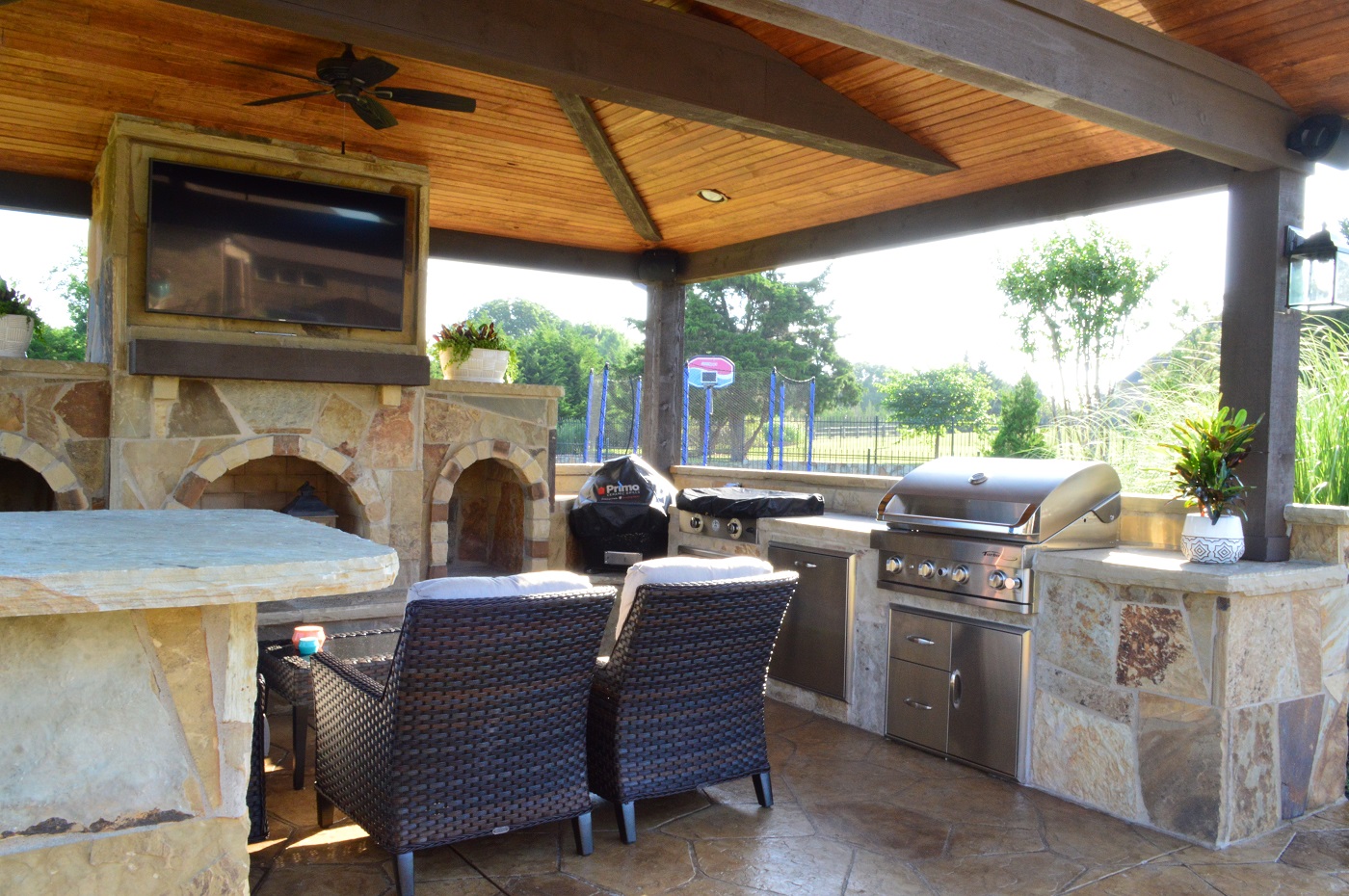 Heath, TX, Combination Patio, Poolside Cabana, Outdoor Kitchen and Outdoor Fireplace