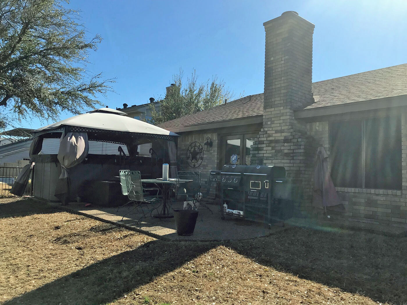 — Before, the patio only reached as far as the back of the fireplace.