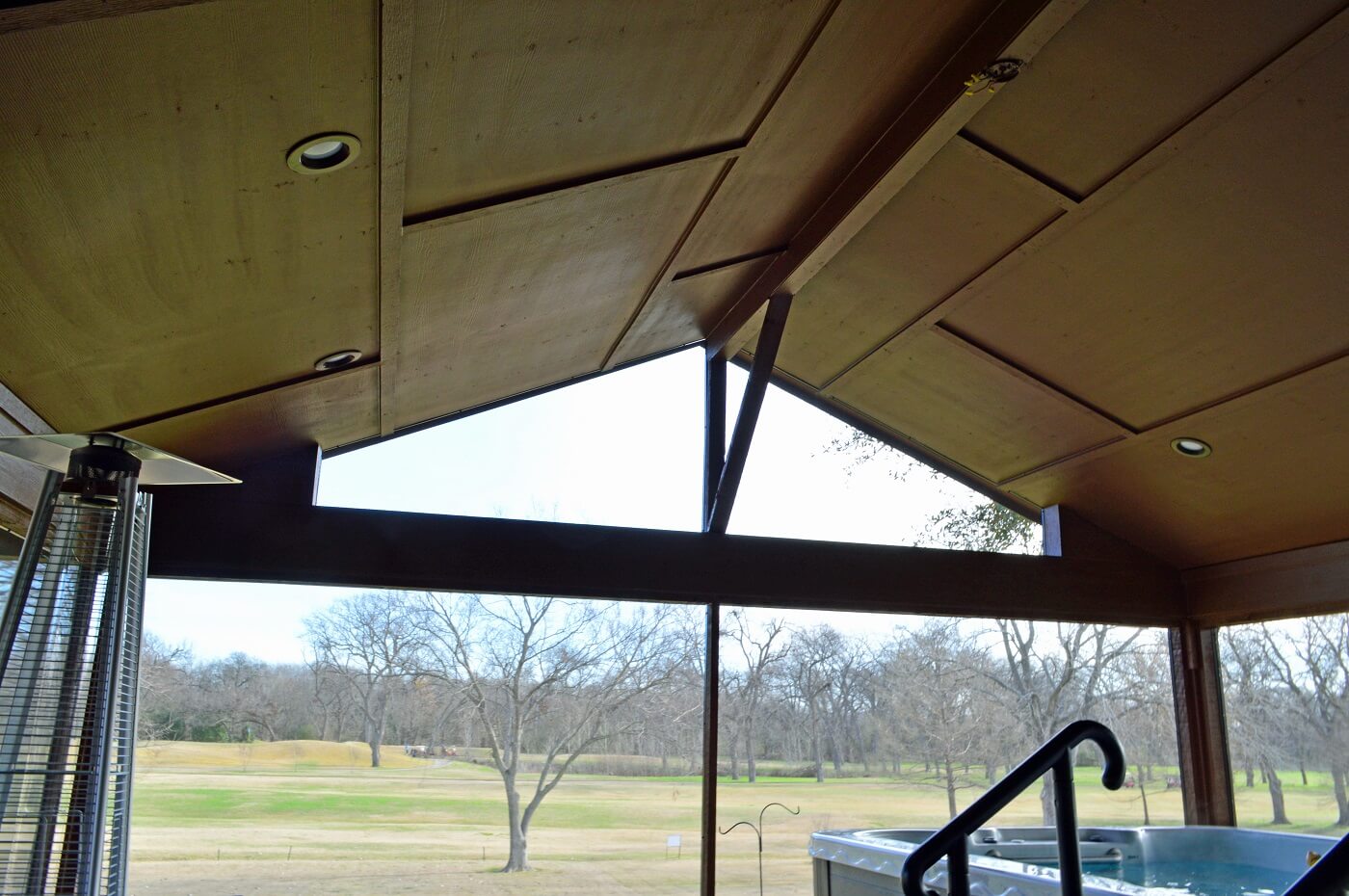 The screened porch we designed for this Garland TX homeowner provides more consistent shade than a canopy could. It gives her a protected area where she can enjoy swimming again. That sounds simple but means everything! The end of the screened porch overlooking the golf course provides such a tranquil view, the view alone could improve a person’s quality of life!