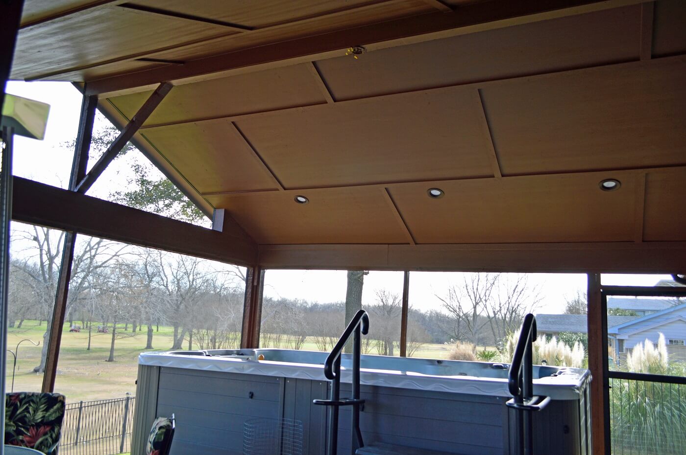 - Design and build a custom screened porch to keep pesky insects and debris away from the swim spa