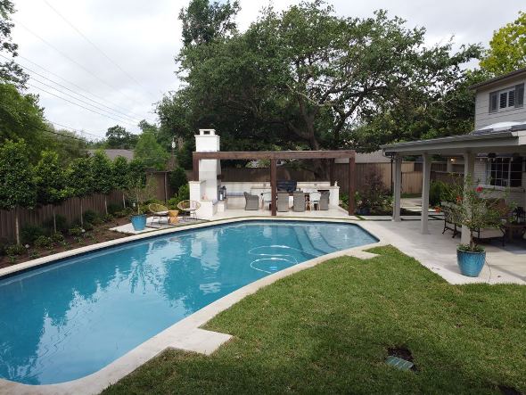 This outdoor kitchen in Southlake, TX , is part of another outdoor living combination, but this one features a low-maintenance pool deck. The homeowners wanted a way to increase the benefits of their backyard pool, and instead of the traditional patio surround, they opted for a gorgeous composite deck. Before we started the project, the clients had no defined outdoor living space prior to this huge project. Apart from installing the in-ground pool, the concrete pool surround and the pool area gate, we handled the entire project.