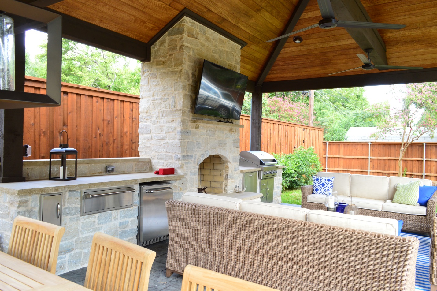 Some of our projects encompass areas of a property that is away from the immediate are of the home. Many homeowners want a designated outdoor living space such as a covered patio, porch or pavilion built away from the home – these are called detached outdoor structures. This all-inclusive project in Dallas is just this kind of space.
