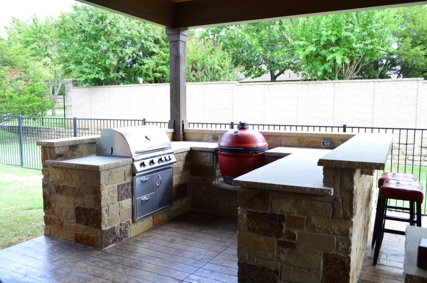 Among Dallas-area homeowners , outdoor kitchens are one of the most requested areas we are asked to design. The largest percentage of those requests come from clients who want to add them as part of an outdoor living combination. We have requests to add kitchens, and grill stations, in unison with a deck, patio or shade structure addition. Outdoor kitchens, along with custom fire features like a fire pit or fireplace, add another element of functionality and versatility to any outdoor living space.
