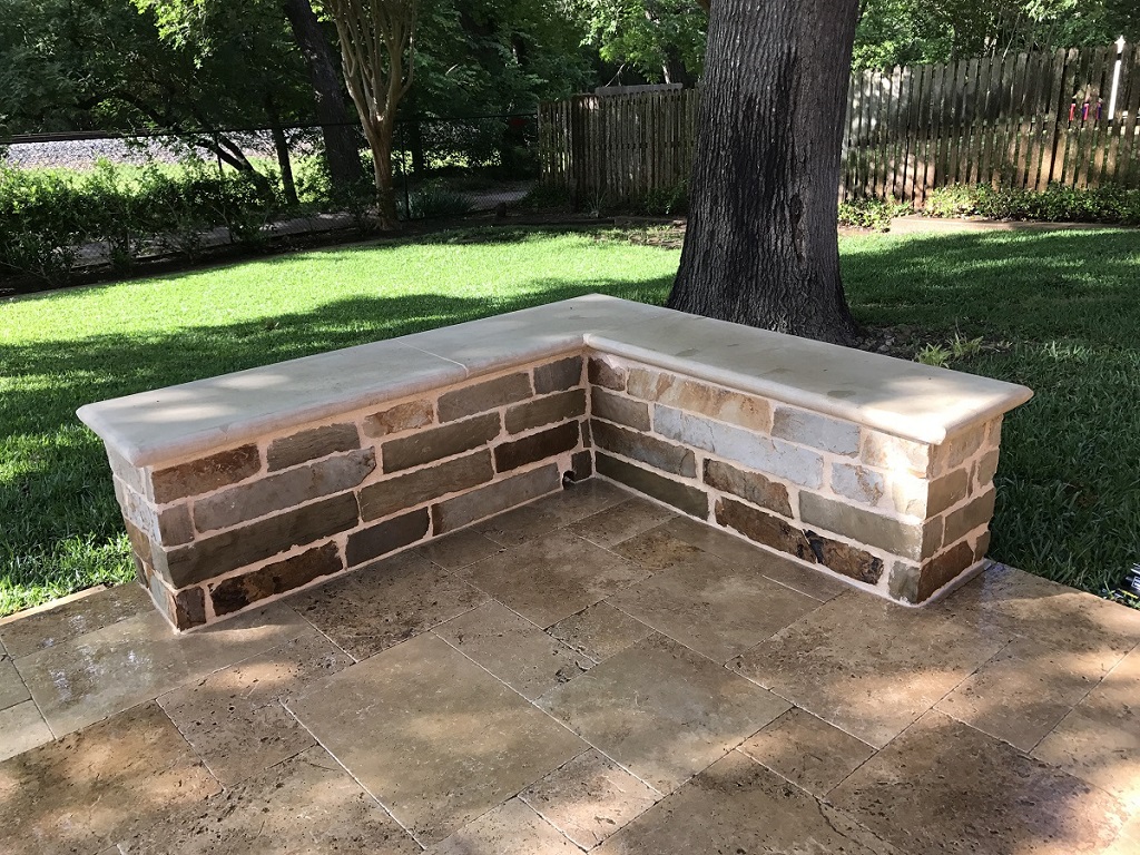 Paver patios are extremely popular in the Dallas area, too, especially Belgard or travertine pavers. When building a paver patio, we excavate 6" below grade, or 6” below the point that we are leveling up to. We backfill the area with 5.5" of road base stone, which is compacted every 3 feet. Then we top this base with an inch or half inch of sand to level it off. We arrange the pavers on this prepared surface and then use polymeric sand in the joints to finish. We follow the same protocol for flagstone patios, too. The exception would be a situation where we install a concrete patio first and then lay the flagstone on it, which is also an option.
