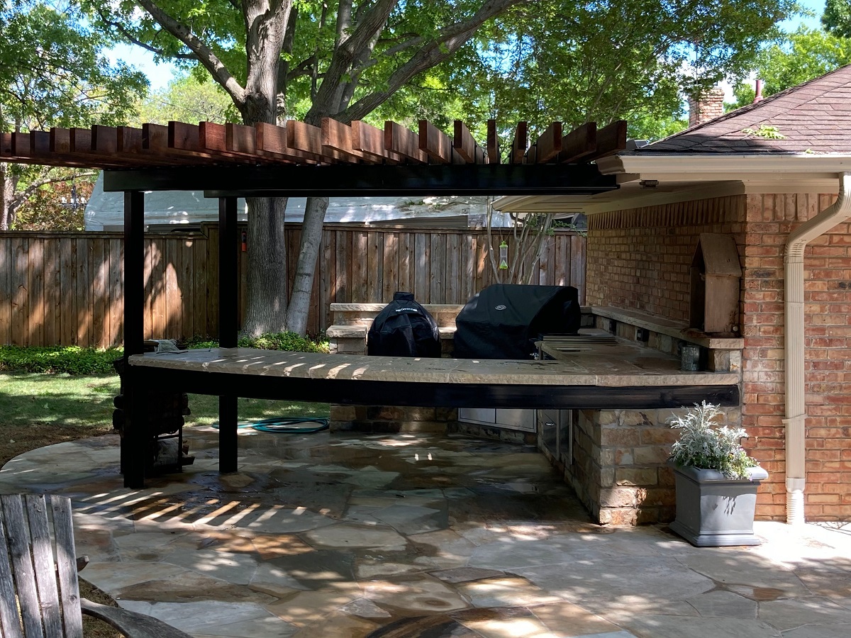 When we initially met with this homeowner, he was very sure of the type of space and look he wanted to achieve. Distinctly wanting a custom outdoor kitchen with a curved steel framed trellis overhead. With all the specifications in hand, Archadeck of Northeast Dallas-Southlake got to work on designing and building this one-of-a-kind addition.