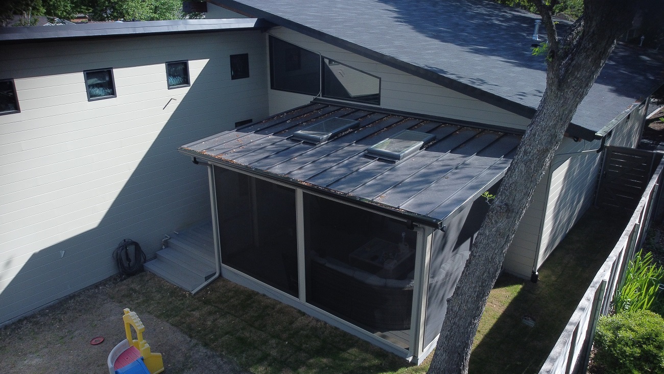 Since skylights are positioned on the roof, they can bring in natural light without compromising privacy. The family can now enjoy the benefits of daylighting without sacrificing the seclusion and intimacy of their screened patio porch.