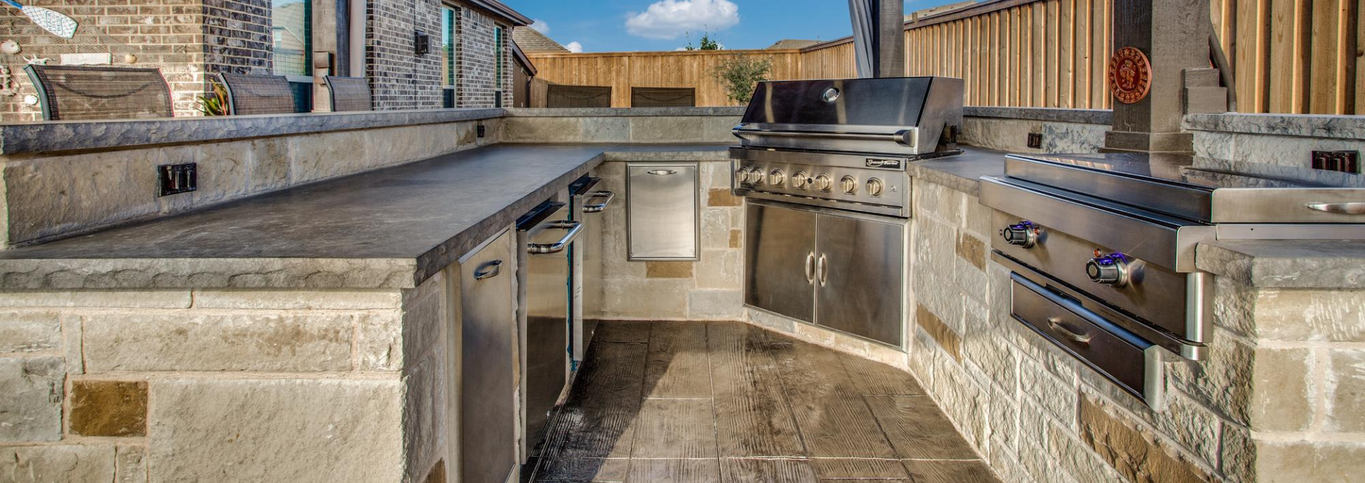 - Custom Design: Every outdoor kitchen we build is a one-of-a-kind creation, specifically designed to match your vision and lifestyle.