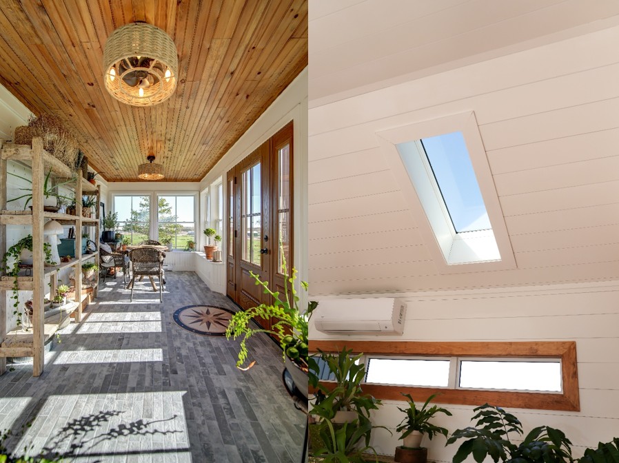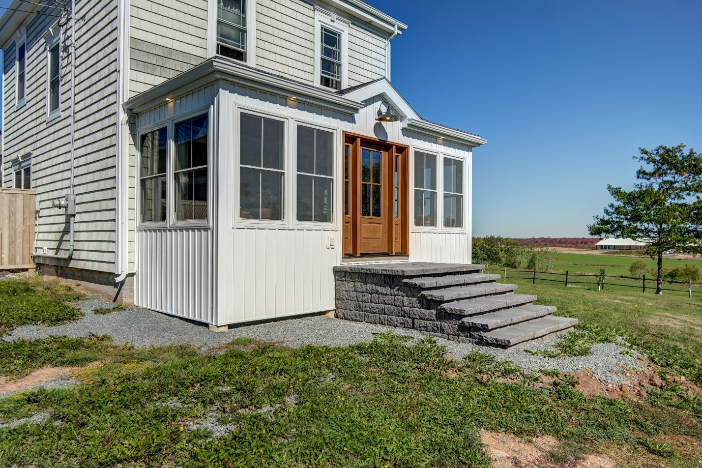 When the owners of this classic property in central Nova Scotia approached us, their vision was clear but ambitious. They wanted to expand their living space and storage capabilities without sacrificing the charm of their existing home. The plan involved a multi-faceted expansion including a new detached garage with a storage loft, a bright and insulated breezeway to connect the new garage to the home, and a completely rebuilt front sunroom to capture the pastoral views. Our goal was to create a cohesive design where the new additions felt like they had always been part of the property’s history, while providing the modern durability required for our unique climate.