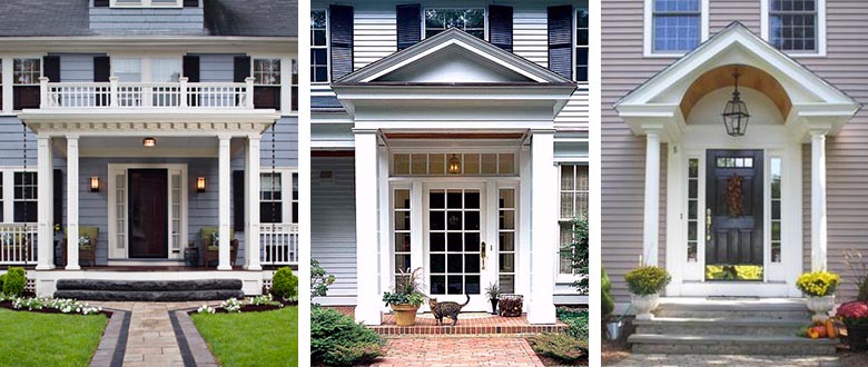 A Portico is smaller than a porch and typically just covers the front entry area. They’re both functional and decorative and can make a huge impact to the look of your home. It welcomes guests and gives protection from weather. Consider its size during the design phase so you can decide if you would like seating or space for flower pots etc. You don’t want it to look to small for the scale of your home.