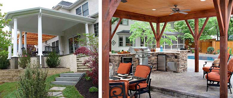 An Open Porch is essentially a roof with support columns over a deck or patio, without walls or screens. They’re great for providing shade and can cool hot summer temperatures by a few degrees. They’re not so great for keeping out the bugs or wind-blown rain, but add plenty of charm and character to any home.