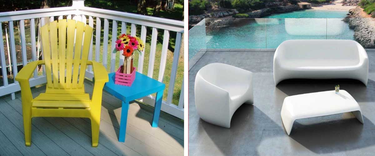 Plastic is often the cheapest option when it comes to outdoor furniture. Sold at most big box stores, it is very portable and usually stackable for easy storage.