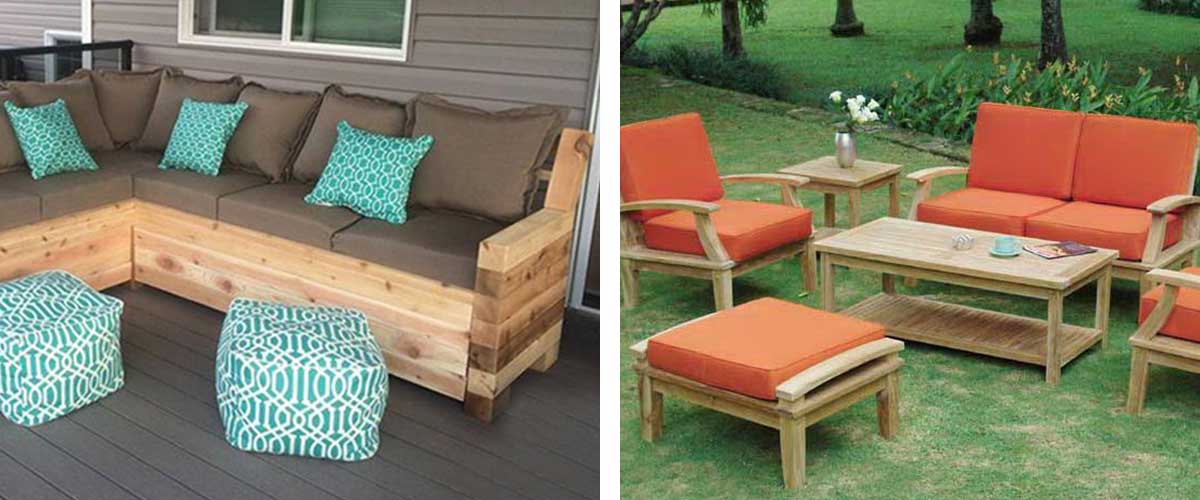 Wood furniture is classic. It’s sturdy and doesn’t hold heat as much as aluminum furniture does. Cedar and Teak are two of the harder woods that are great for the outdoors. They see little effect from rain and actually have enzymes that protect against decay.