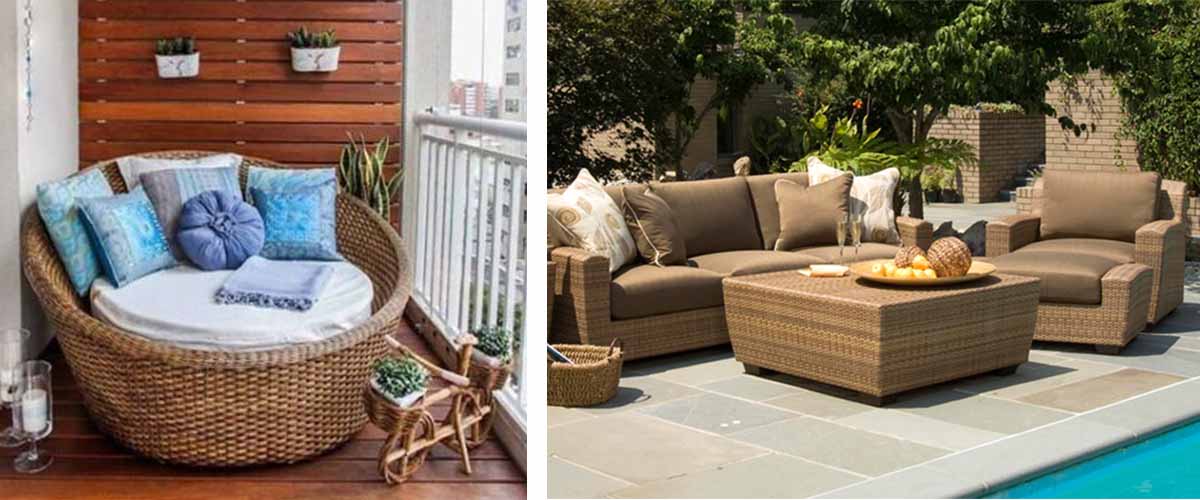 Wicker can come in both woven wood or synthetic versions (synthetic wickers holds up well in the elements, wood may need to have some type of sealant). It is both lightweight, making it easy to move around your outdoor living spaces and durable. Cleaning wicker is easy with a hose and mild soap.