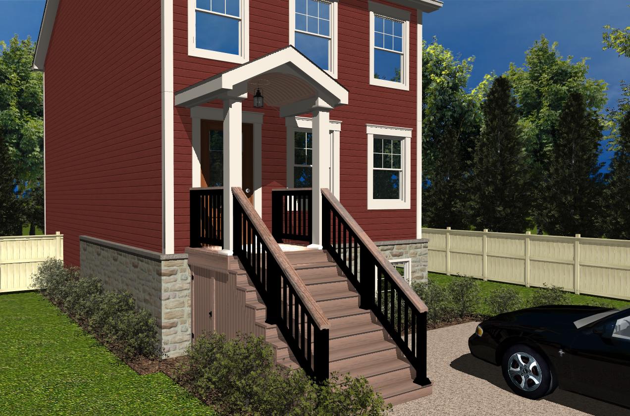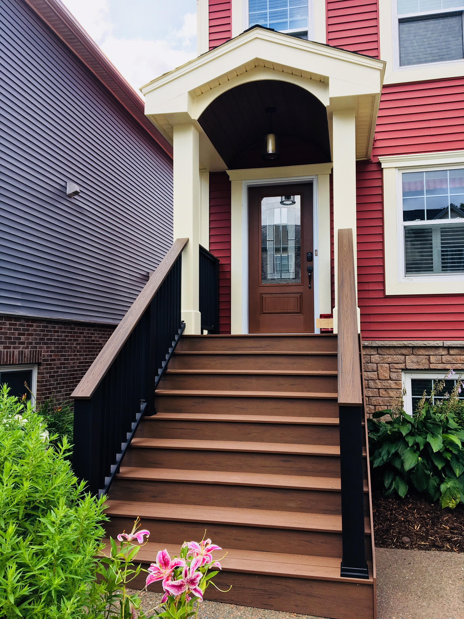 Before the construction of this project could begin our team worked on the design, material selection, and gathered the required documents and building permits for this front porch. Once the construction plans were finalized we were able to begin the demolition of the existing front step structure. We then used machinery to excavate posts locations to frost protection per code and poured concrete footings 48" deep.