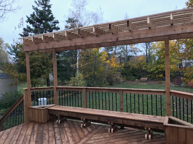 They also chose an option to include pressure treated stairs to grade, bench, planter boxes, and pergola.