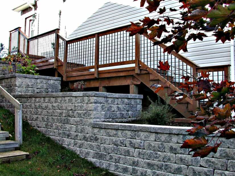The man-made blocks are formed from concrete and aggregate stone, making them both durable and beautiful. This 2 piece system has a facing block and an internal anchoring system made from recycled materials. They matched the raw beauty of natural stone and classic cut stone to add a distinguished style to the landscape.