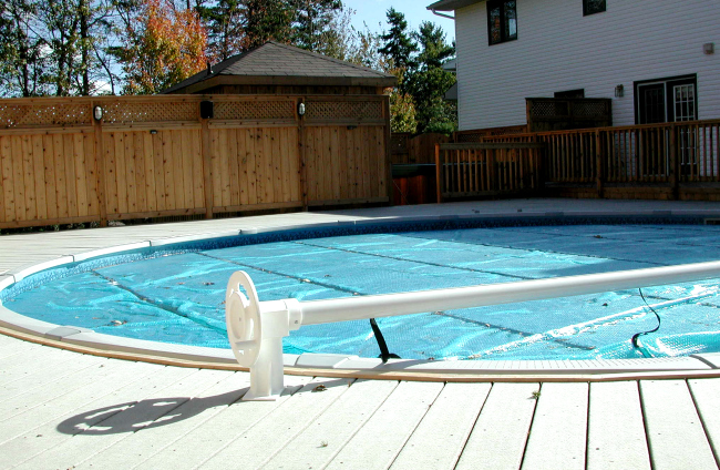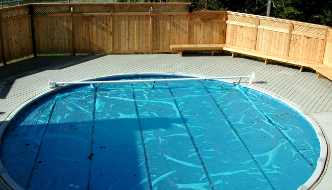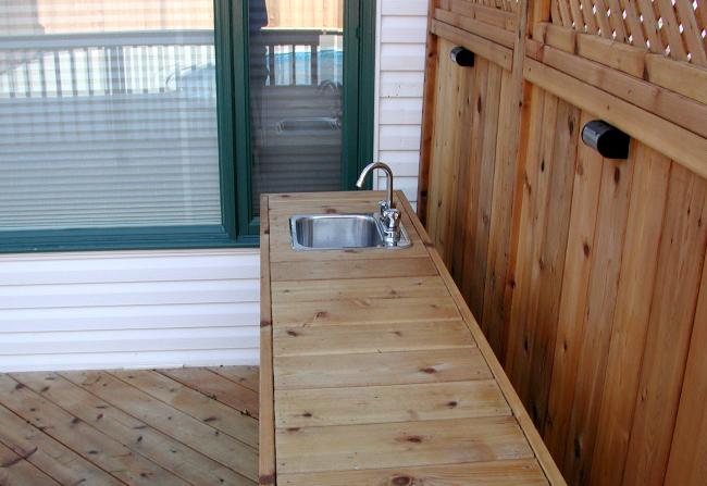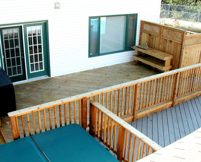 The deck itself is made of a composite; this will hold up best around the pool and in the Nova Scotia climate. Not having to worry about splinters was an added bonus for bare feet!