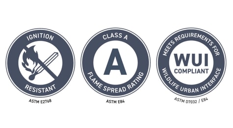 “The two main criteria to look for in building products are a Class A FSI (Flame Spread Index) and WUI (Wildland- urban Interface) compliance,” according to TimberTech, a composite decking specialist. A material's flame-spread, which describes how it burns on the surface, is one of the most tested properties for how well it holds up in a fire. WUI requires materials to resist flame spread, flying embers, and wildfire heat.