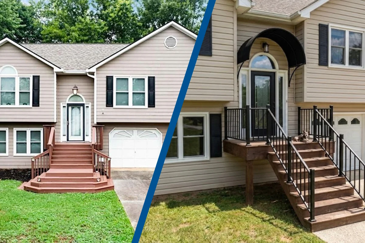 When J.R. and Abigail first reached out to Archadeck of Northwest Georgia, they envisioned a covered front porch to replace their aging deck. But once we explored the underlying problems — including safety concerns, rotting wood, package protection, and an outdated design — we crafted an innovative solution that delivered everything they needed for a fraction of the cost of a full porch build.
